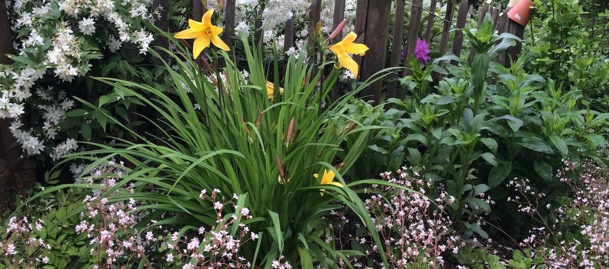 Pflegeleichtes Beet: Stauden in Kombination mit Bodendeckern.